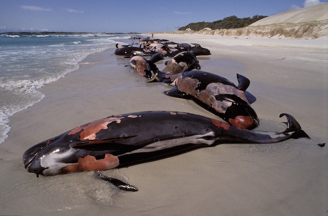 В мозге выбросившихся на берег в шотландском Файф китов ученые обнаружили высокую концентрацию токсичных химических веществ. Группа гринд выбросились на пляж между Анструтером и Питтенвимом 2 сентября 2012 года. Из 31 млекопитающего только 10 удалось вернуть обратно в море, остальные же погибли. Среди них было 16 самок и 5 самцов.
