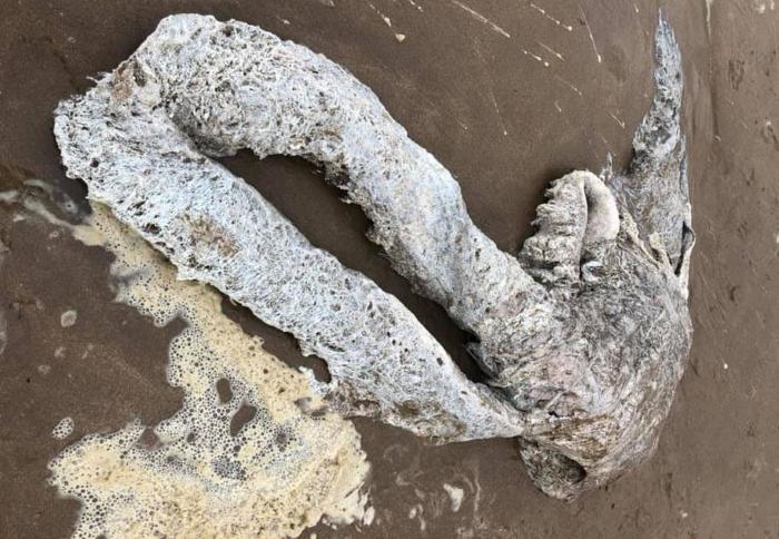 На пляже Вулакомб английского района Норт-Девон нашли загадочное морское существо, поставившее местных жителей в тупик. Об этом сообщает газета The Cornishman. 28 сентября Ричард Уолден (Richard Walden) гулял по пляжу и наткнулся на необычное существо.