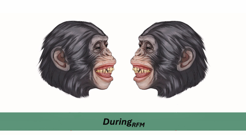 Группа ученых под руководством Мартины Франческони (Martina Francesconi) из Пизанского университета решила исследовать этот вопрос на близком родственнике человека — бонобо (Pan paniscus). Эти приматы известны тем, что используют секс не только для размножения, но и для укрепления социальных связей. Во время полового акта они нередко демонстрируют оскал, который, скорее всего, указывает на положительное возбуждение. Иногда оскаливается только один партнер и спустя какое-то время прячет зубы, а иногда в паре происходит быстрая лицевая мимикрия (rapid face mimicry) — второй партнер почти мгновенно повторяет оскал первого, и в таких случаях сексуальный контакт длится дольше.