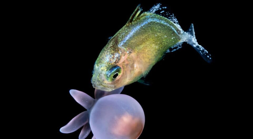 Команда ихтиологов под руководством Габриэля Афонсо (Gabriel V.F. Afonso) из Виргинского института морских исследований описала еще один пример близких взаимоотношений рыб и пелагических стрекающих. В центре внимания исследователей оказались фотографии, сделанные дайверами — в том числе одним из авторов работы — во время ночных погружений в открытом море (blackwater diving) в окрестностях Таити в 2014 году и у берегов Флориды в 2018-2023 годах. На них были запечатлены личинки и молодь рыб, которые находились в компании планктонных личинок стрекающих из класса шестилучевых кораллов (Hexacorallia).